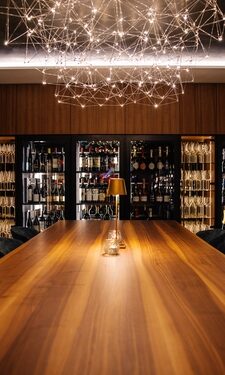 Ab 18:00 Uhr beginnt der Abend mit einem Aperitif an der Spa-Rezeption und einem Gruß aus der Küche, begleitet von stimmungsvoller Lichtinszenierung und ruhiger Musik.