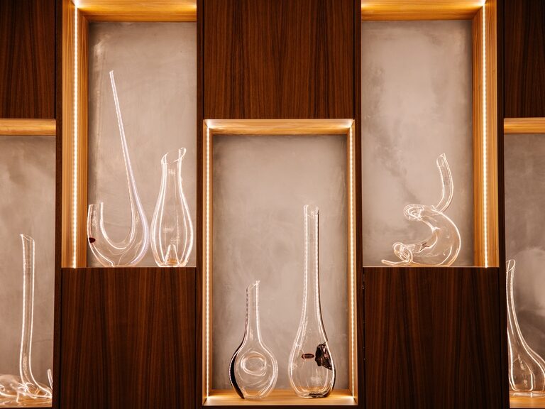 Der Charakter eines Weines zeigt sich erst im richtigen Glas. In unserer Vinothek genießen Gäste ausschließlich aus RIEDEL Gläsern – rebsortenspezifisch entwickelt und in ihrer Form auf Aromatik und Struktur abgestimmt.